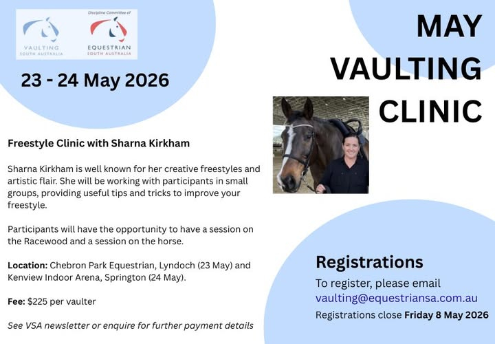 A Freestyle Clinc with Sharna Kirkham is being held on 23-24th May.